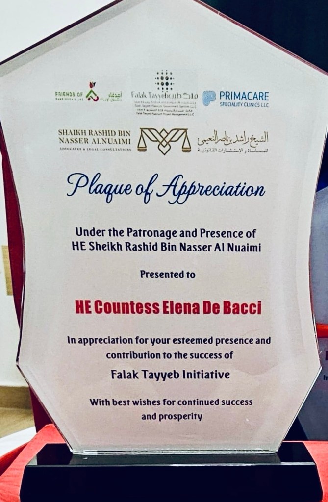 Countess Elena De Bacci and Countessina Anna De Bacci had the honor to be invited as special guests for the Extraordinary Healthcare Initiative, Falak Tayyeb, Ceremony under the patronage and presence of His Excellency Sheikh Rashid Bin Nasser Al Nuaimi.