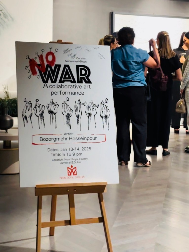 Countess Elena De Bacci and Countessina Anna De Bacci visited H.E. Sheikha Noor’s Royal Gallery in Jumeirah 1 for her humanitarian art event “NO WAR”.